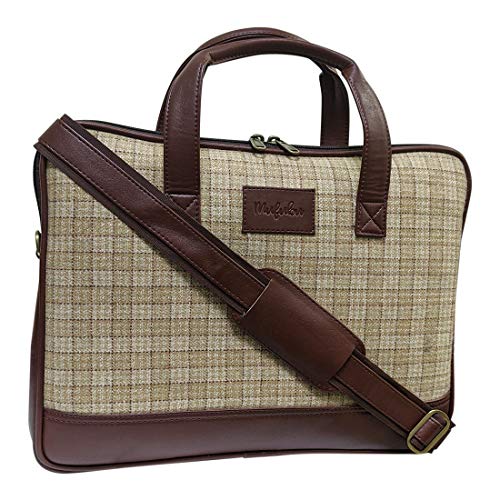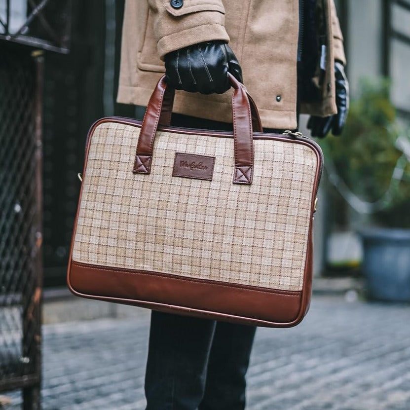 Vegan and Tweed Laptop Messenger Bag - Beige Checks